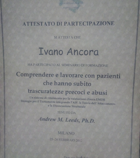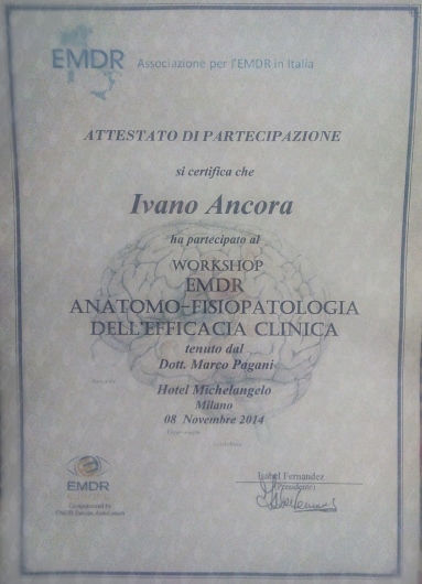 346 63 242 11 Sono il Dott. Ivano Ancora, psicoterapeuta con 30 anni di esperienza. Mi sono specializzato in Psicoterapia Cognitivo Comportamentale presso la Scuola di Psicoterapia Cognitivo Comportamentale di Torino, dove tutt’ora insegno Teoria e Tecnica della Psicoterapia. Sono anche un esperto in EMDR (EMDR Practicioner) Fra le varie forme di sofferenza psicologica di cui mi occupo, sottolineo problemi gravi come depressione, la dipendenza affettiva e/o da sostanze, il Disturbo Ossessivo-Compulsivo, i Disturbi della Condotta Alimentare, le crisi relazionali e la mancanza di amore per sé stessi. oltre alla bassa autostima. Particolare attenzione meritano le Sindromi Psicosomatiche che sfuggono ad una diagnosi medica precisa. Inoltre, sono specializzato in ipnositerapia e psico-traumatologia. Lavoro esclusivamente con Adulti. Sono un professionista competente e appassionato, che offre un approccio personalizzato per ogni paziente. Lo scopo del mio intervento è quello di favorire l’accesso alle Risorse Innate del Paziente (programma di autoguarigione) tramite un sistema che “permette al corpo di raccontare la sua Storia". Grazie alla mia professionalità, riesco a raggiungere velocemente e con delicatezza il cuore delle problematiche dei miei pazienti, trasformando il dolore in fiducia e il trauma in una esperienza che forgia la personalità. Mi descrivono onesto, solare ed empatico, e considero me stesso uno strumento per riprendere il proprio percorso di Crescita.